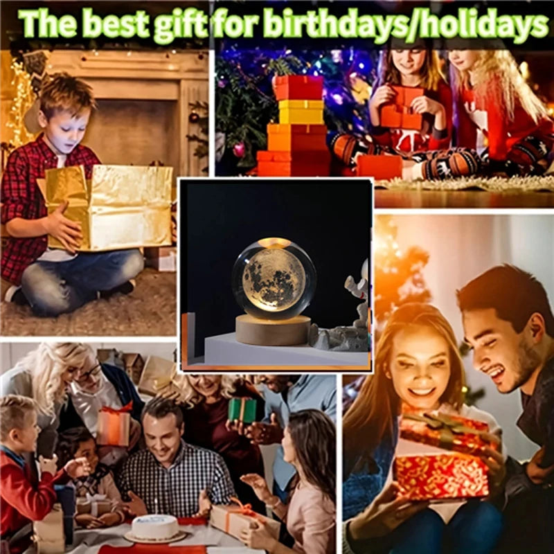 3D Moon Laser engraved crystal ball Colorful night light, birthday girlfriend classmate wife children christmas day gift bedroom