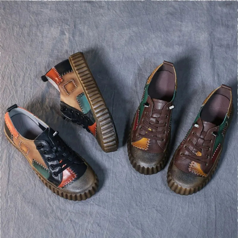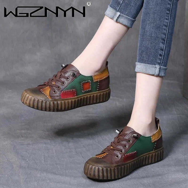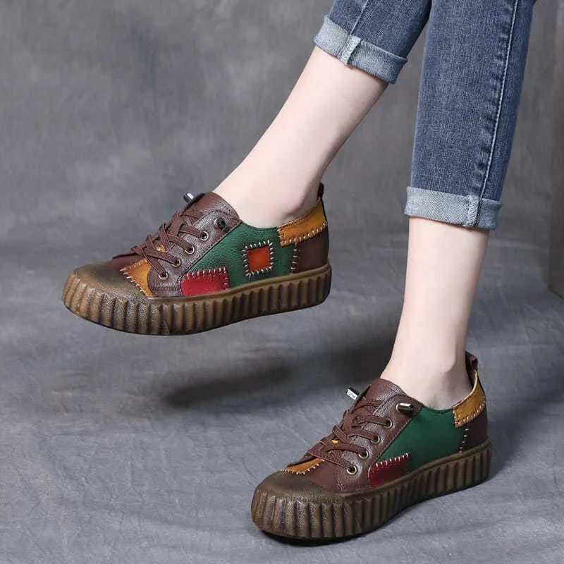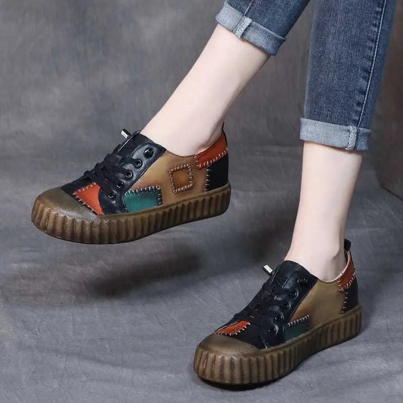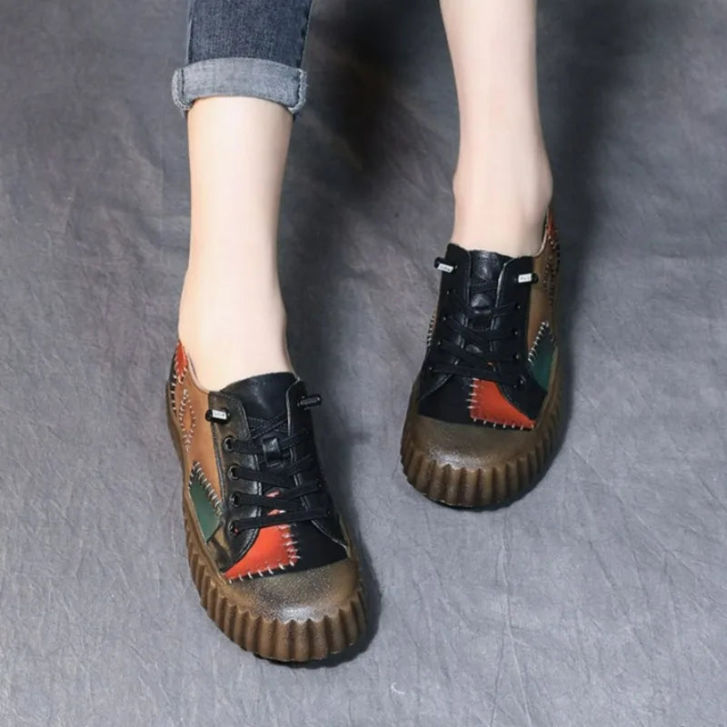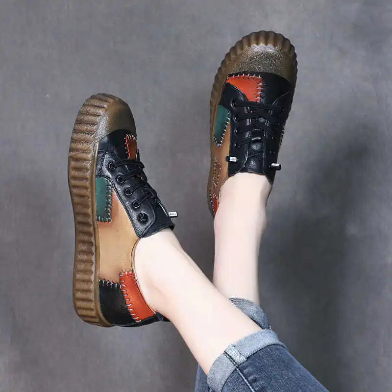 Retro Patchwork Leather Single Shoe for Women Platform Shoes Spring 2023 Autumn British Style Casual Shoes with Low Tops Sneaker