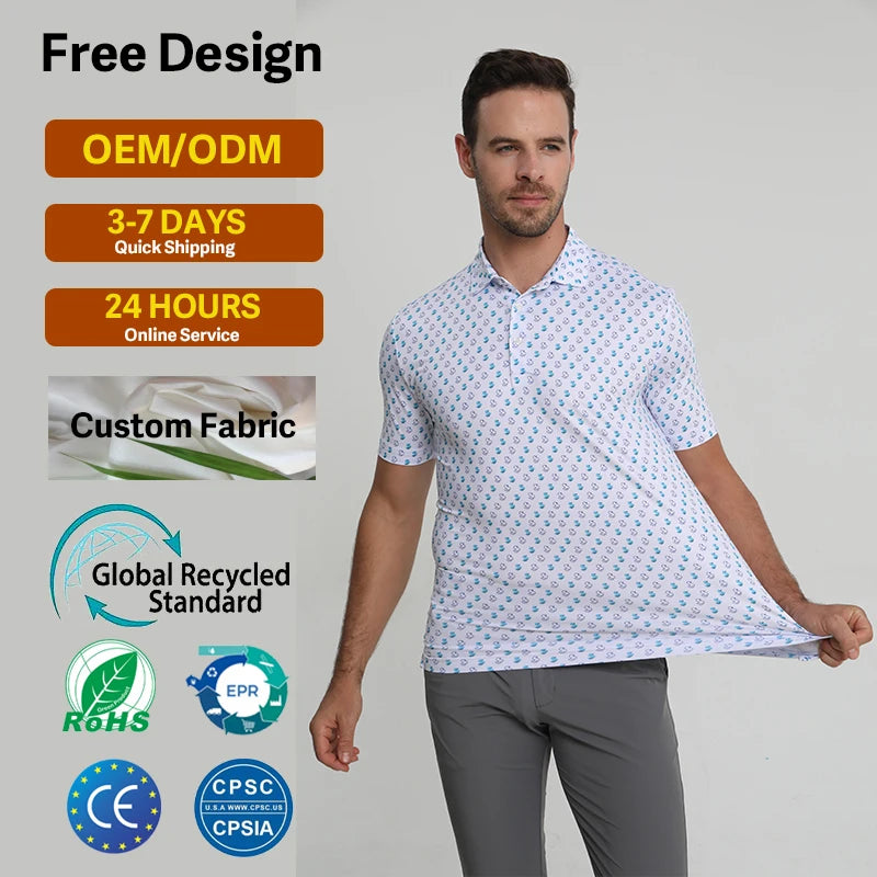 Custom Embroidery Logo Plain Blank Full Over Printing Quick Dry Slim Fitted Moisture Polyester Spandex Mens Golf Polo Shirts