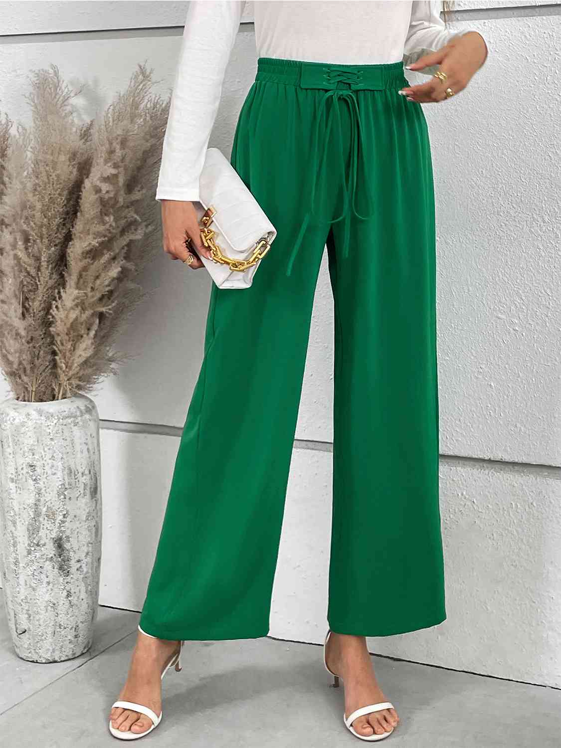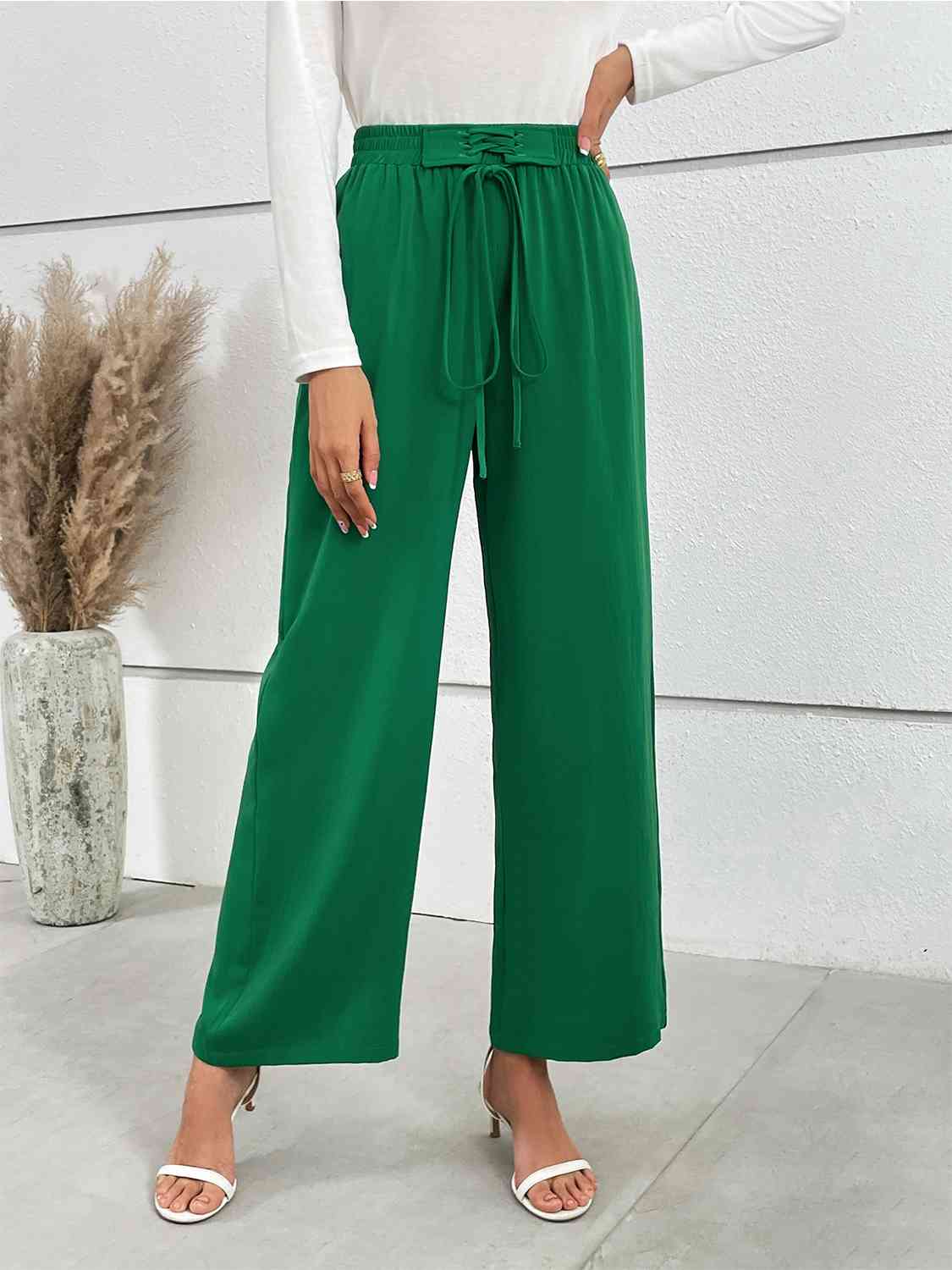 Lace-Up Waist Straight Leg Pants