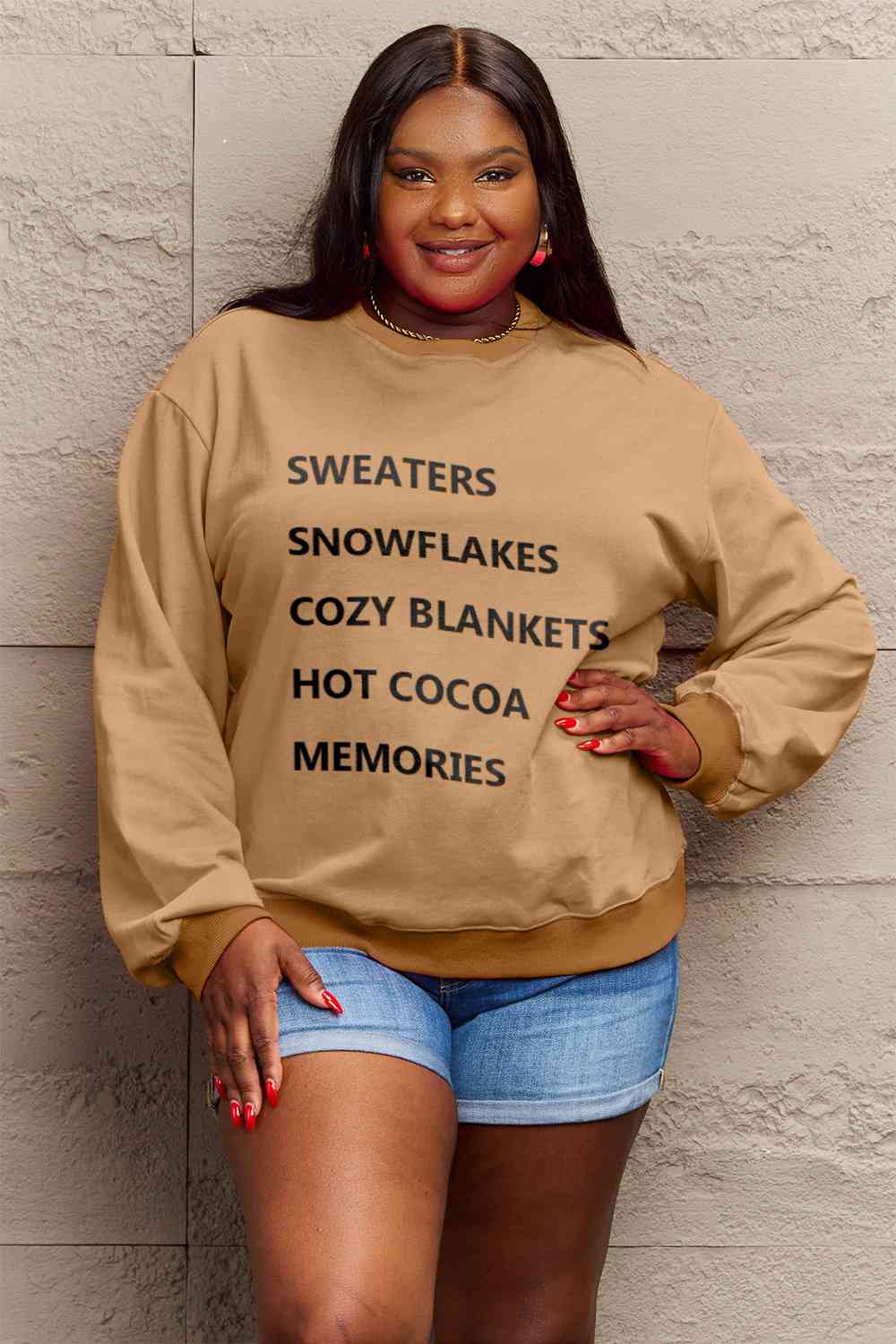 Simply Love Full Size Letter Graphic Round Neck Sweatshirt
