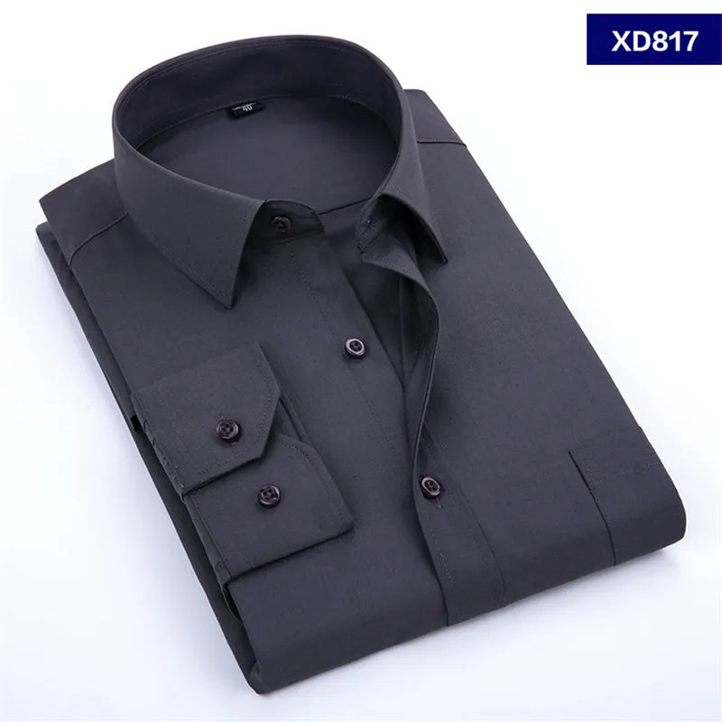 2022 New Men's Dress Shirt Solid Color Plus Size 8XL Black White Blue Gray Chemise Homme Male Business Casual Long Sleeved Shirt