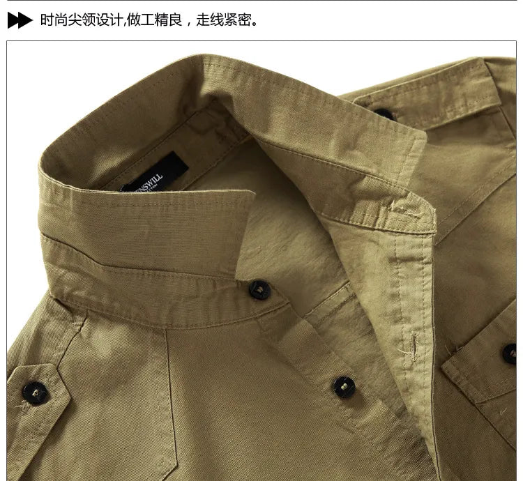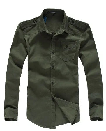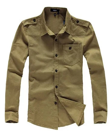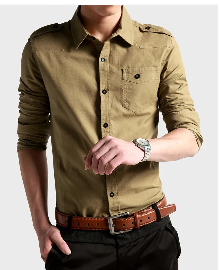 2023 Men Causal Dress Shirt Cotton,men's Army Long Sleeve Slim Shirts Military Khaki Shirts Green Fit Military Style Male Shirts