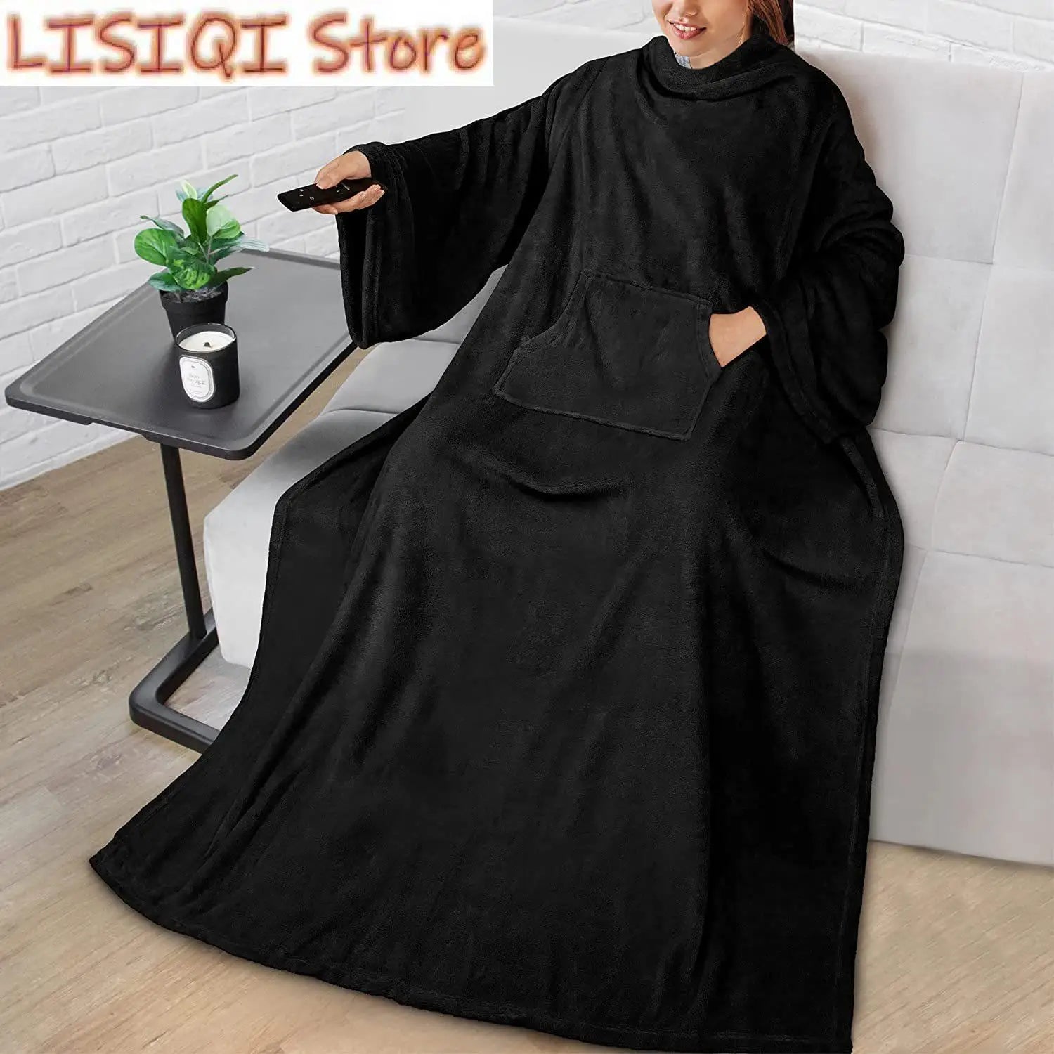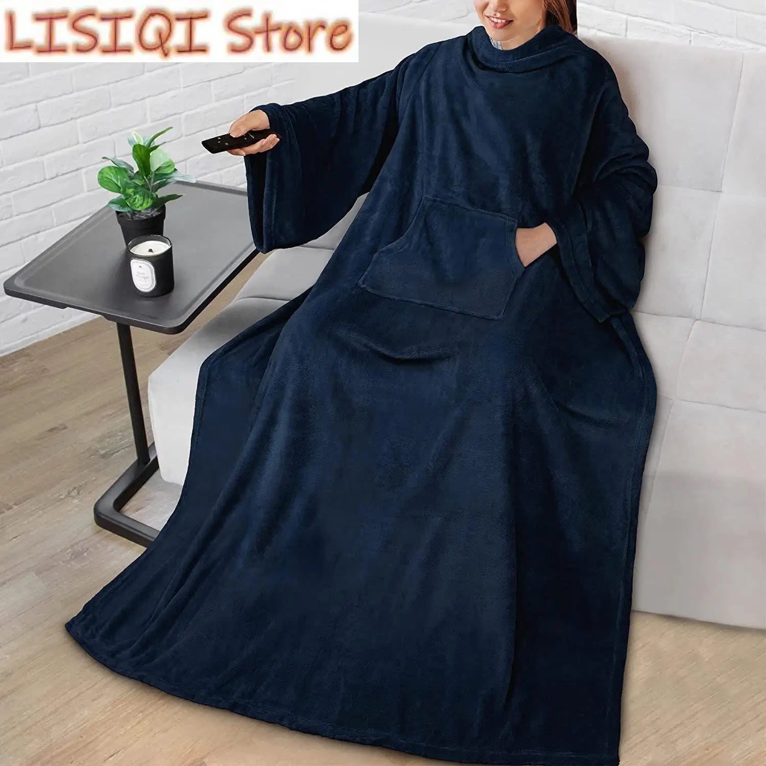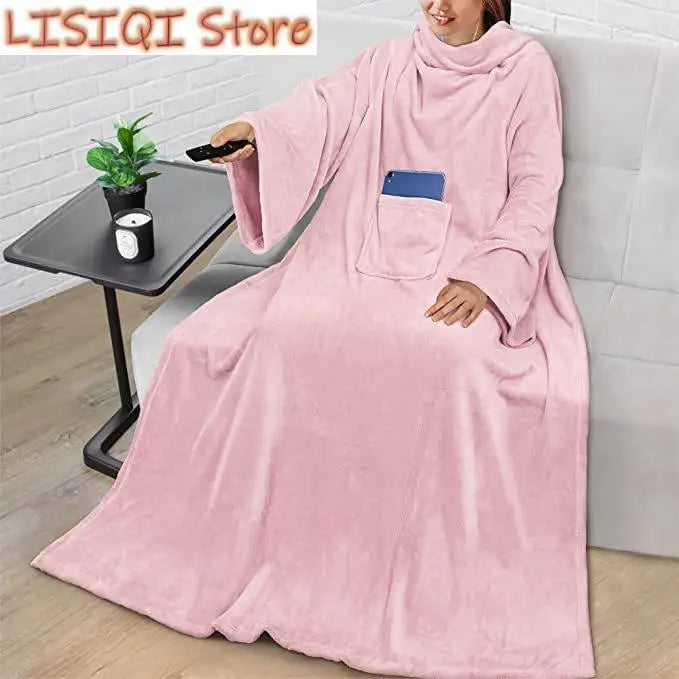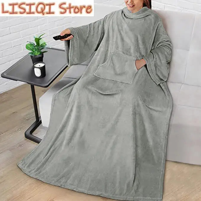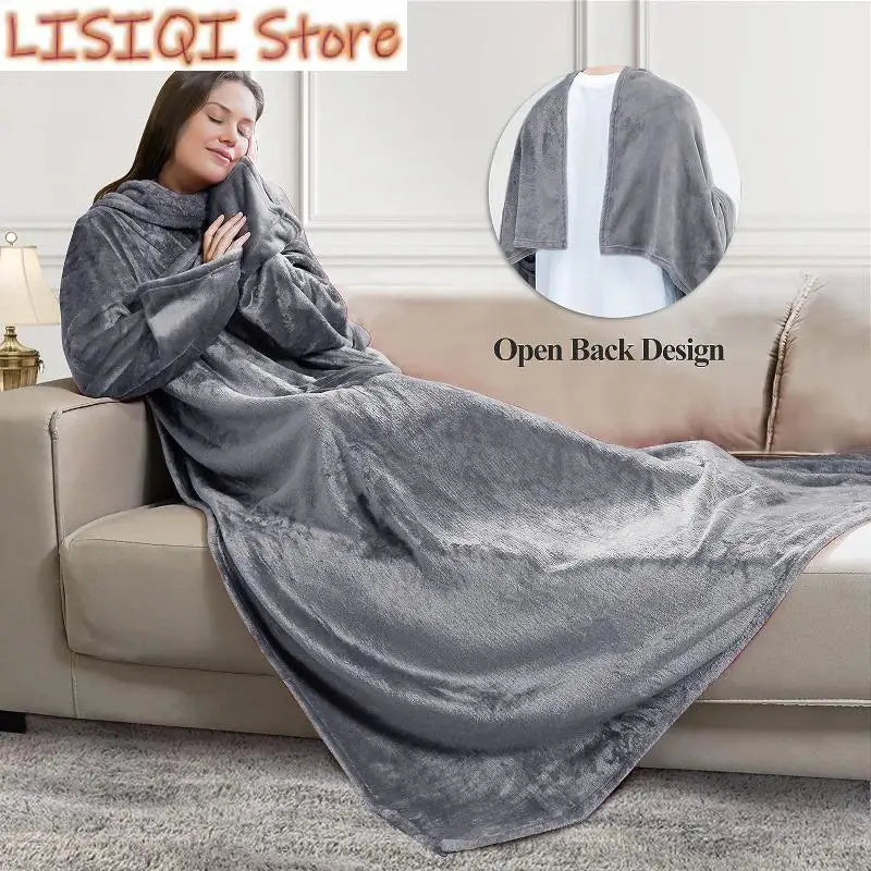 50"x 70" Wearable Blanket with Sleeves and Pocket, Warm and Comfy Flannel Blanket Sweatshirt for Adult Women Men