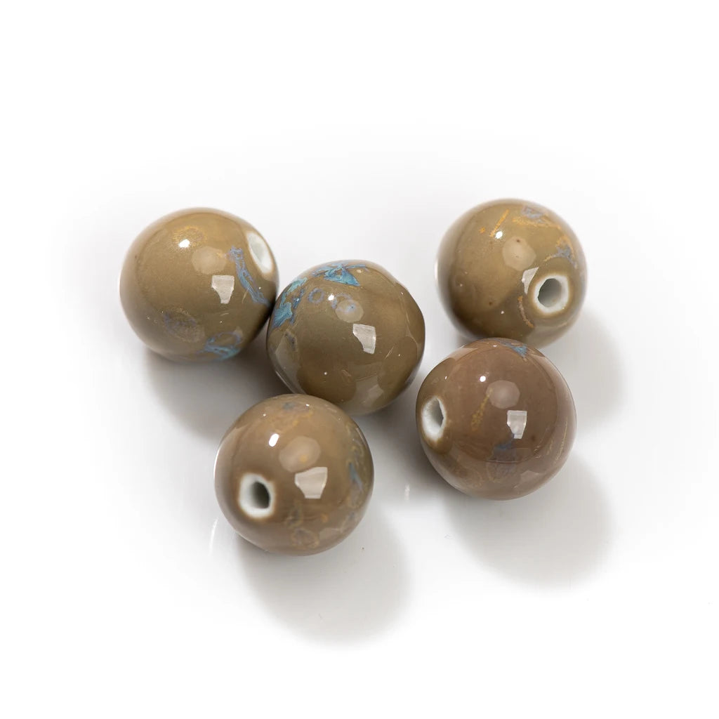 5pcs Artisan Crafted 16mm Ceramic Beads High-Temperature Kiln Variations Handcrafted Jewelry Components TCZ164