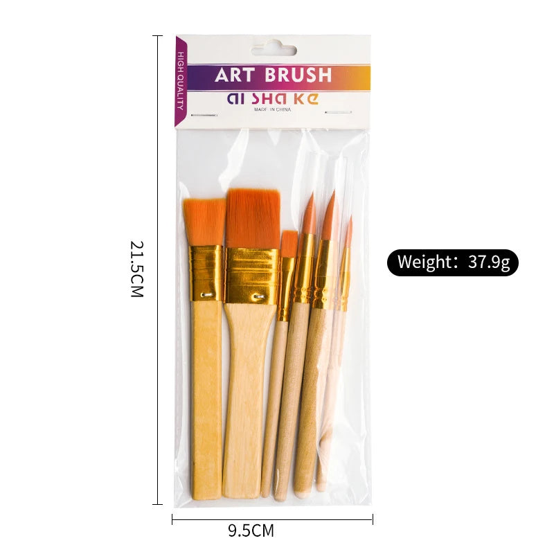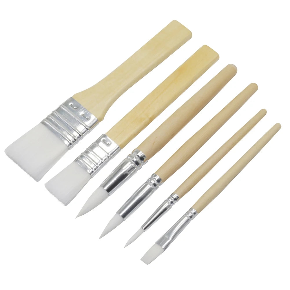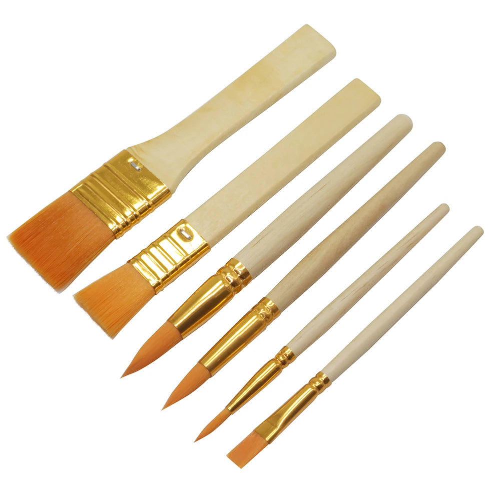 6 Pcs Painting Nylon Board Brush Painting Oil Painting Brush Art Graffiti Painting Supplies Log Color Short Rod Brush Set