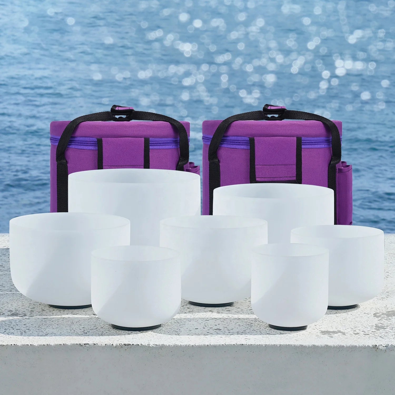 SUCCESS 432Hz Frosted Quartz Crystal Singing Bowls A B C D E F G Note set of 7 crystal singing bowls