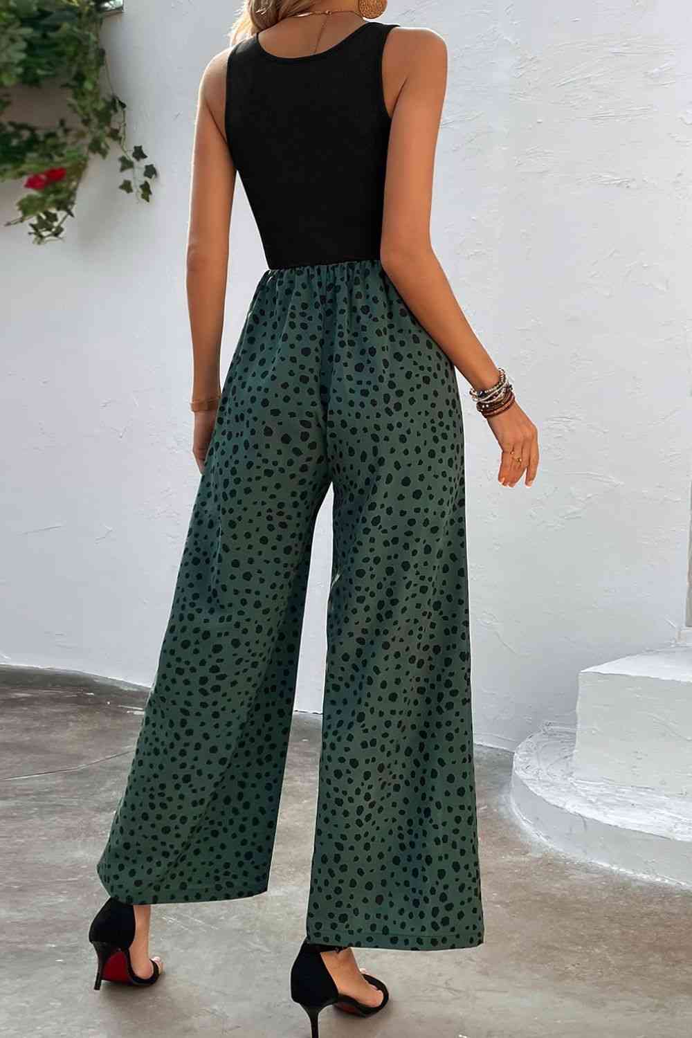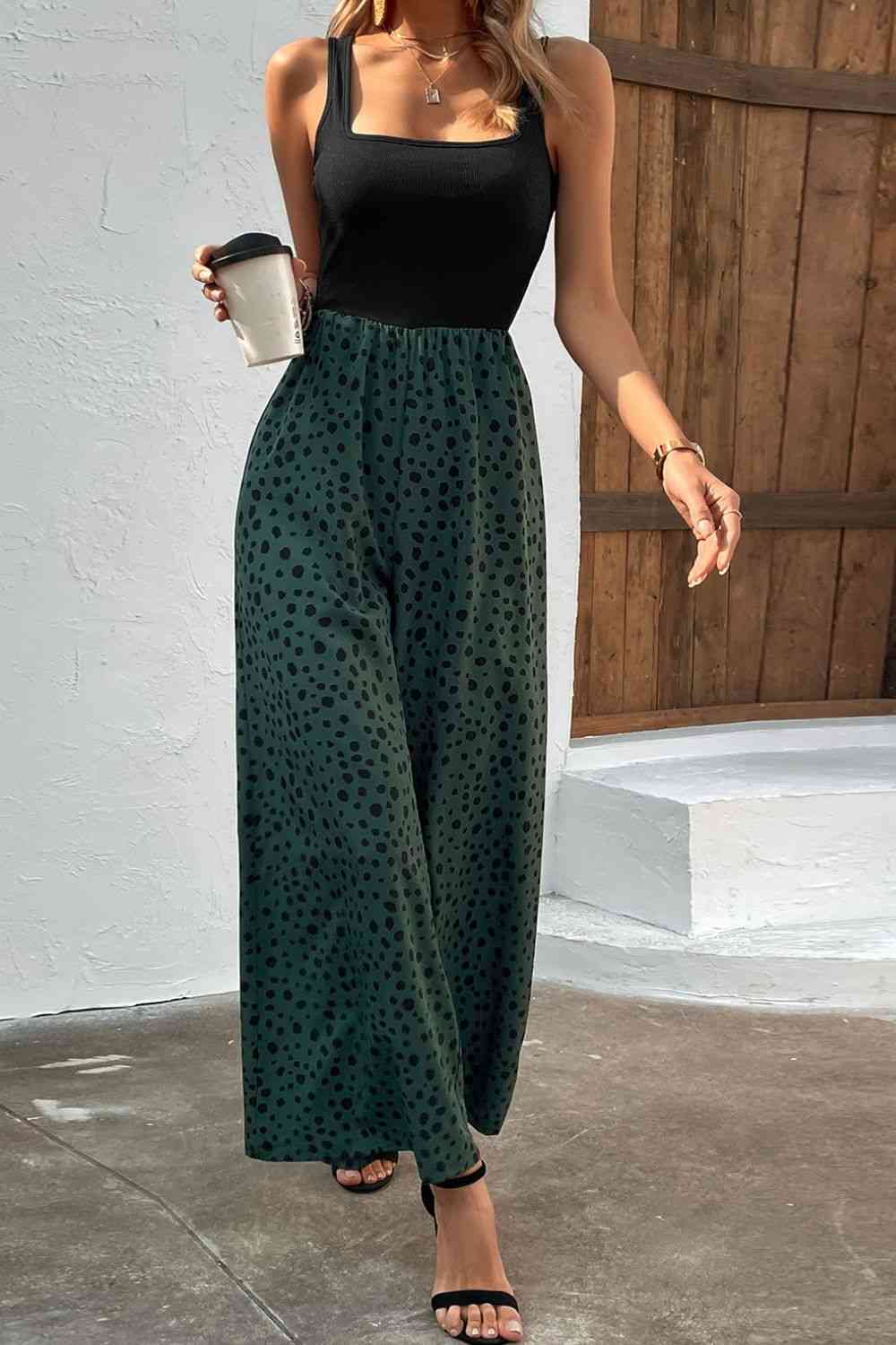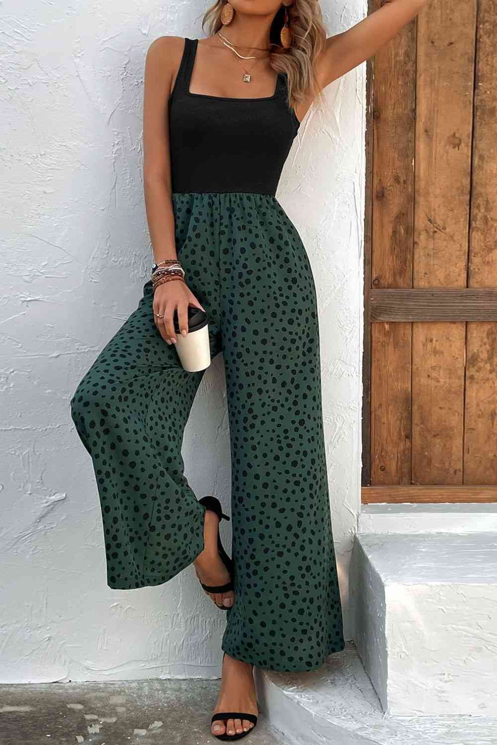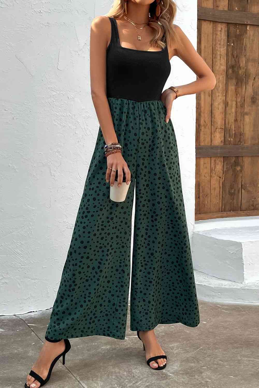 Two-Tone Square Neck Wide Leg Jumpsuit
