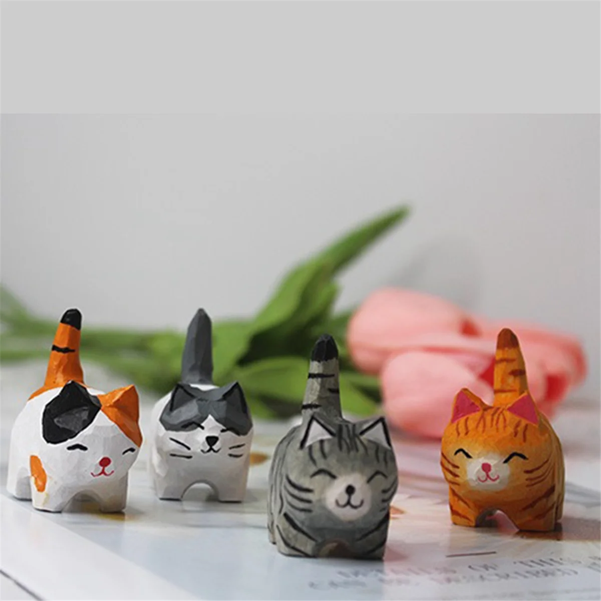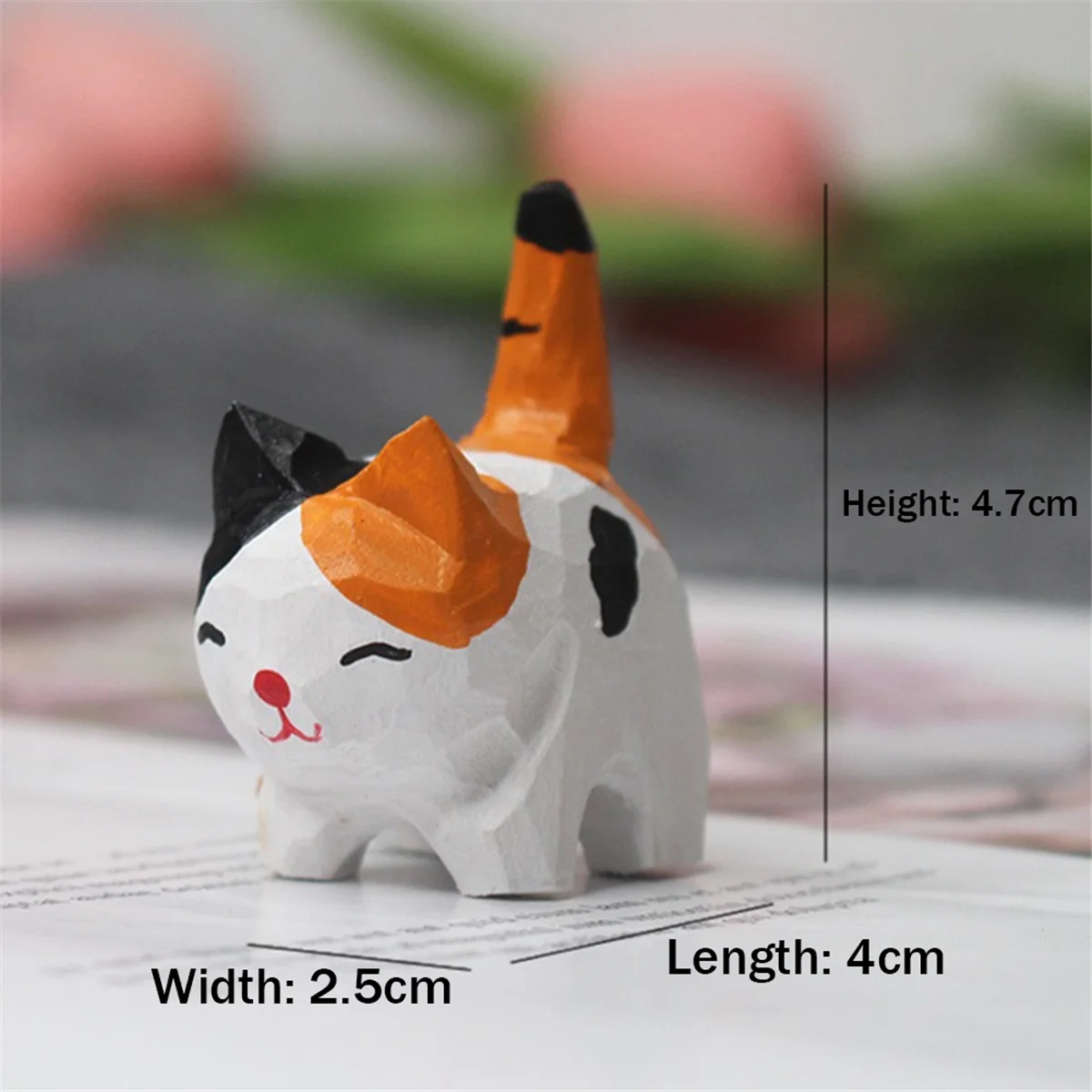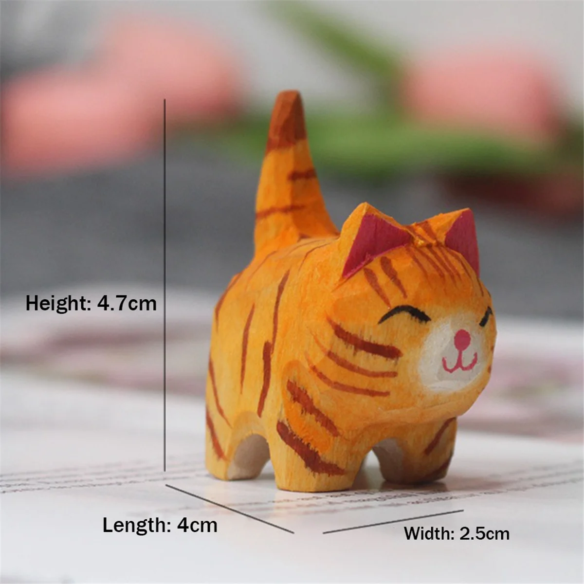 Wooden Cats Figurines Sculpture Statue Lovely Small Carved Orange Cats Statue Handmade Wood Kitten Art Carving Work.