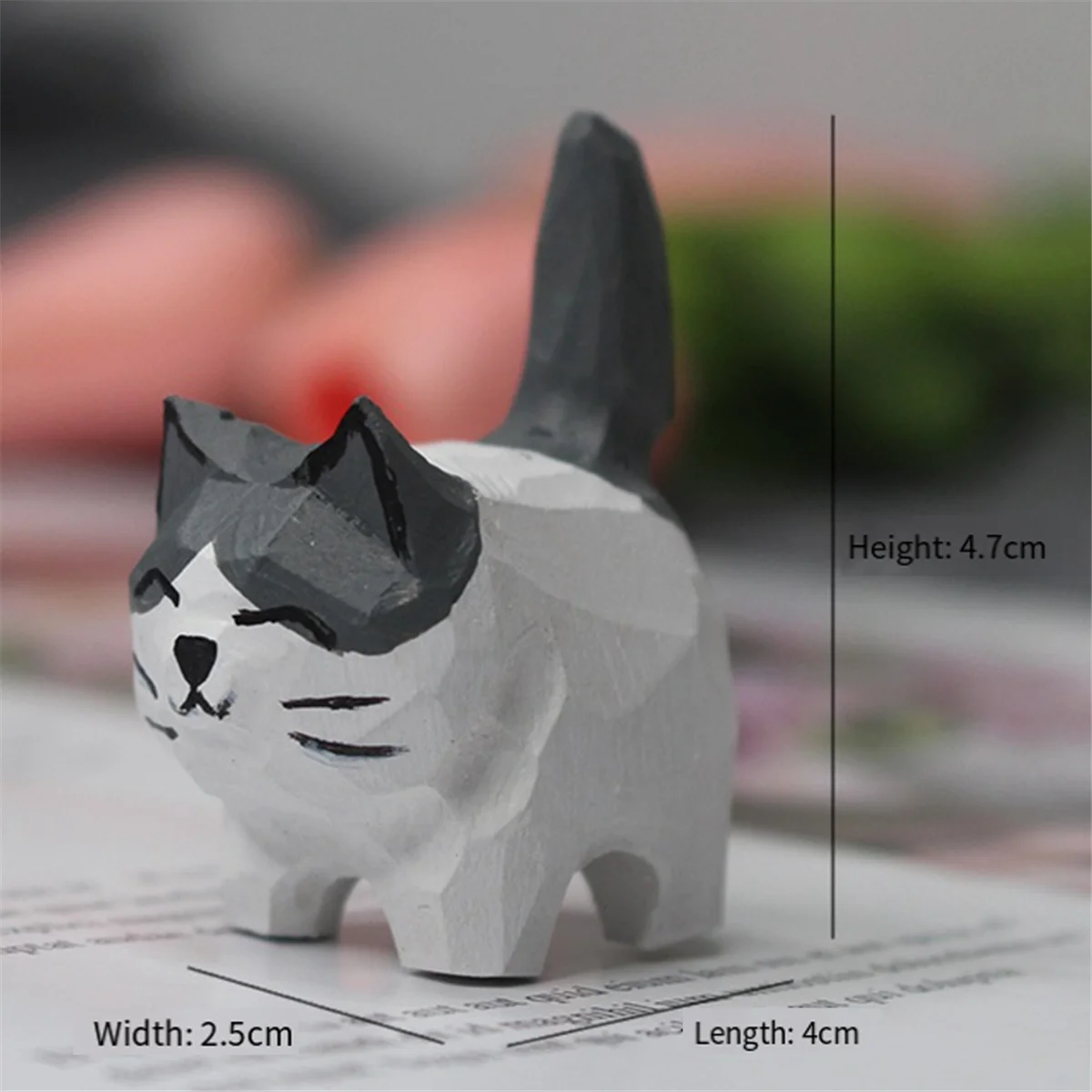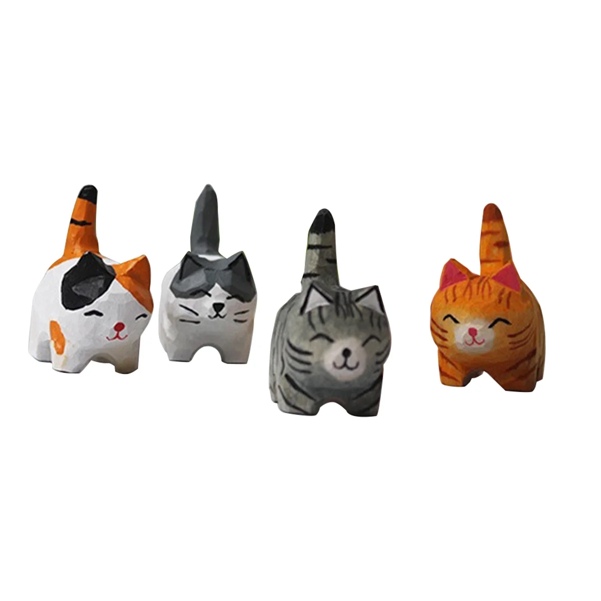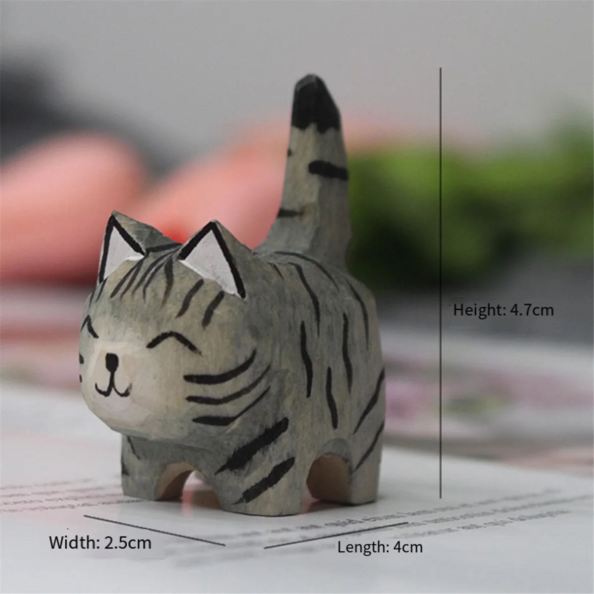 Wooden Cats Figurines Sculpture Statue Lovely Small Carved Orange Cats Statue Handmade Wood Kitten Art Carving Work.